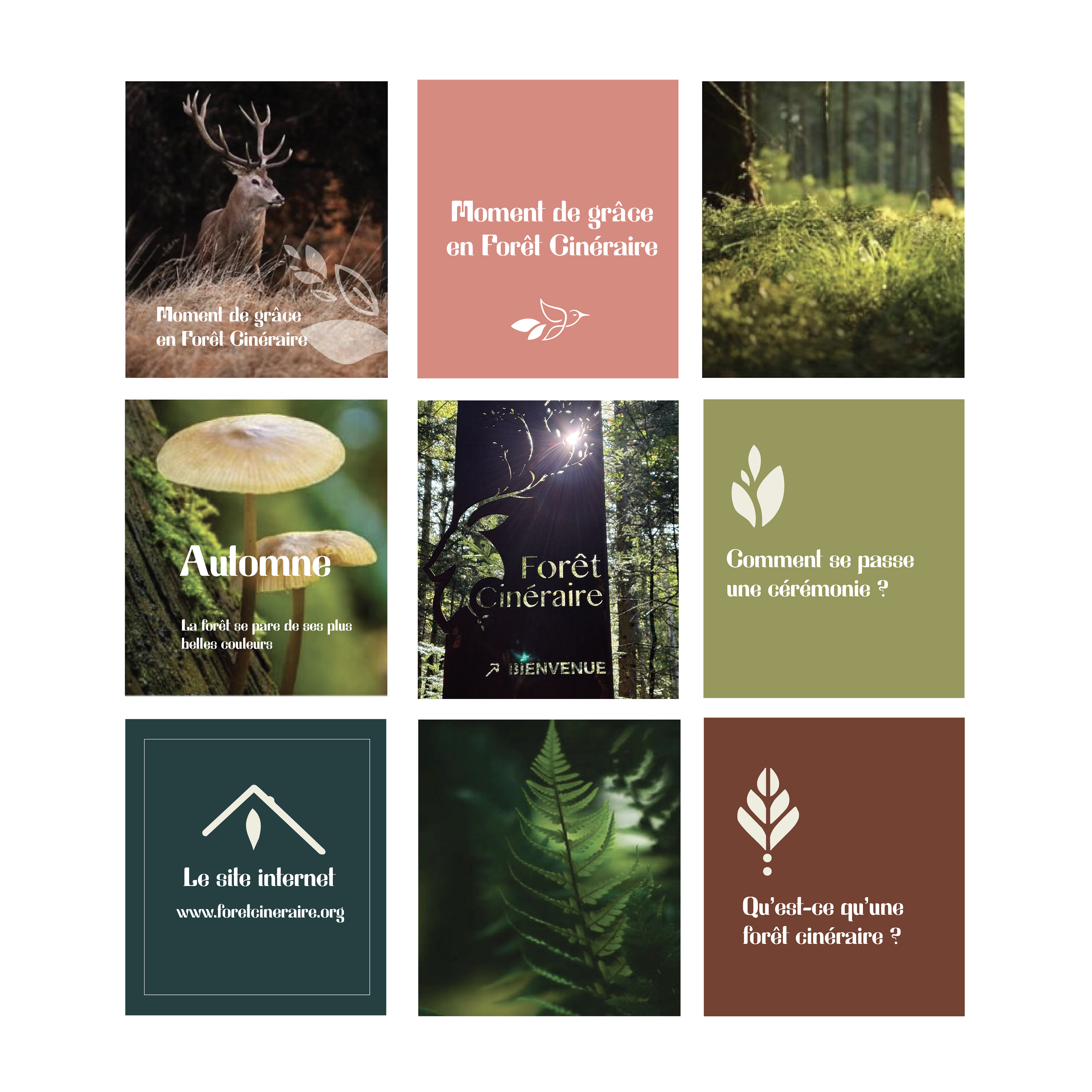 Depuis plus de 7 ans, j’ai conçu et déployé l’ensemble de la communication du projet, du logo aux supports d’information, en passant par la réflexion autour des urnes biodégradables et la signalétique en forêt. Chaque élément a été pensé avec une attention particulière au sens, à la sobriété et au respect du lieu, afin d’informer et de prévenir sans jamais heurter, dans un contexte profondément humain et sensible.
